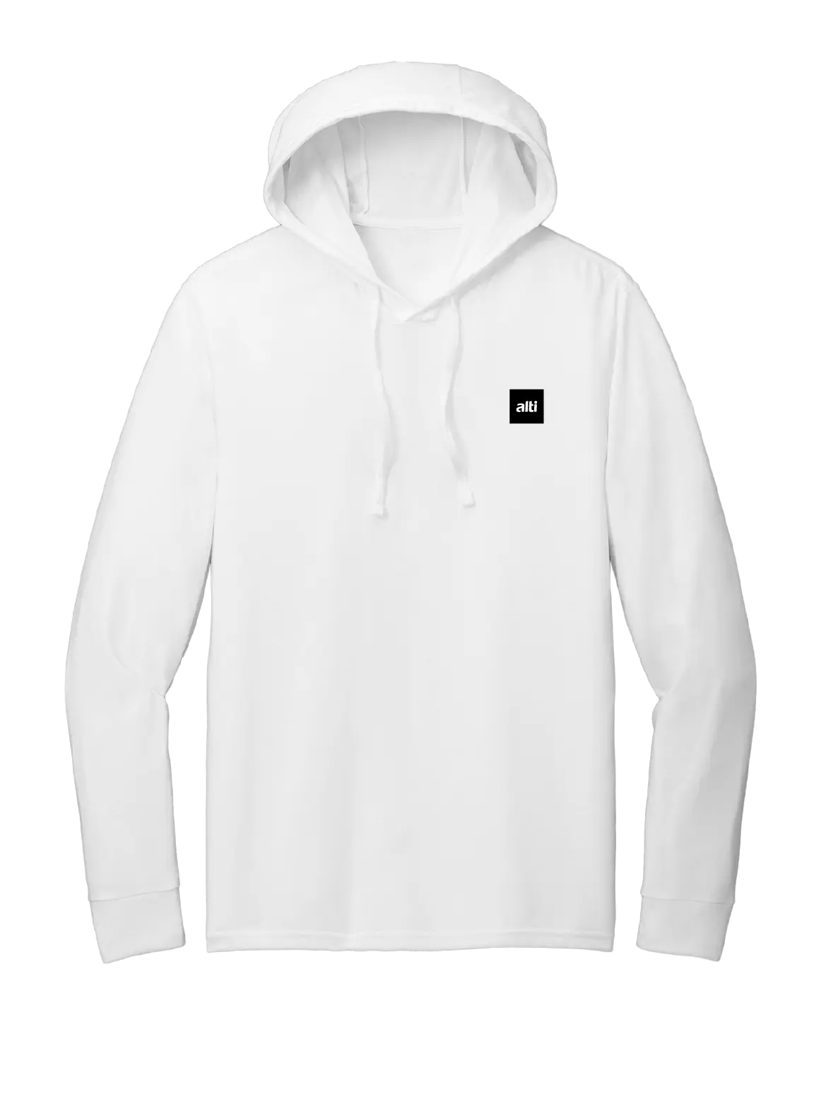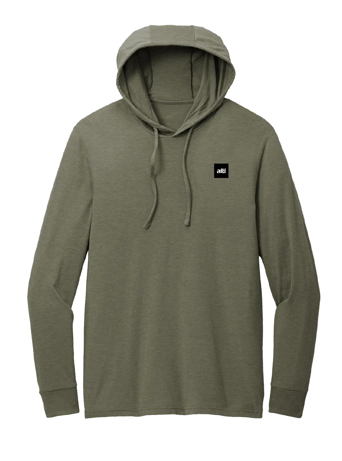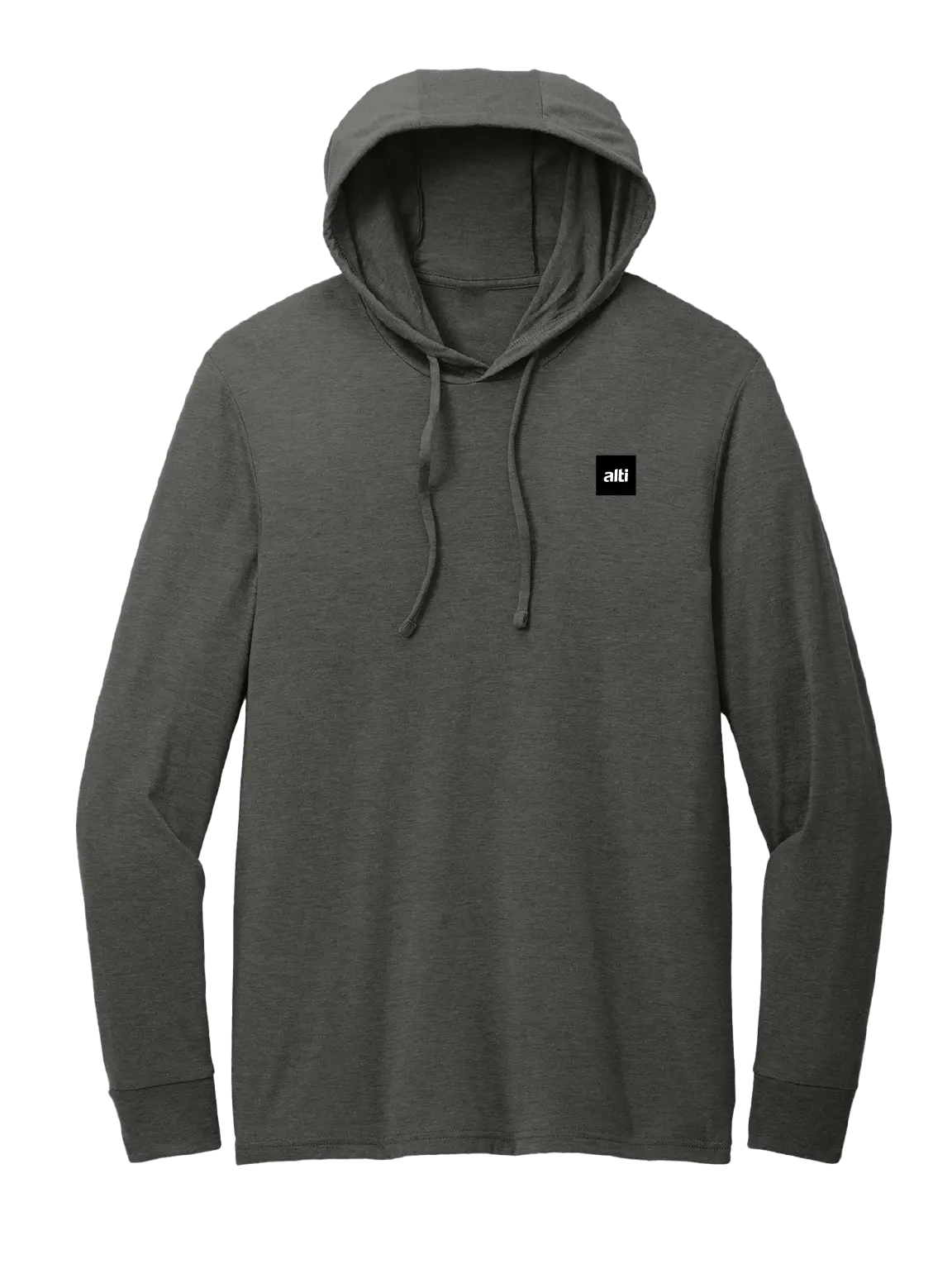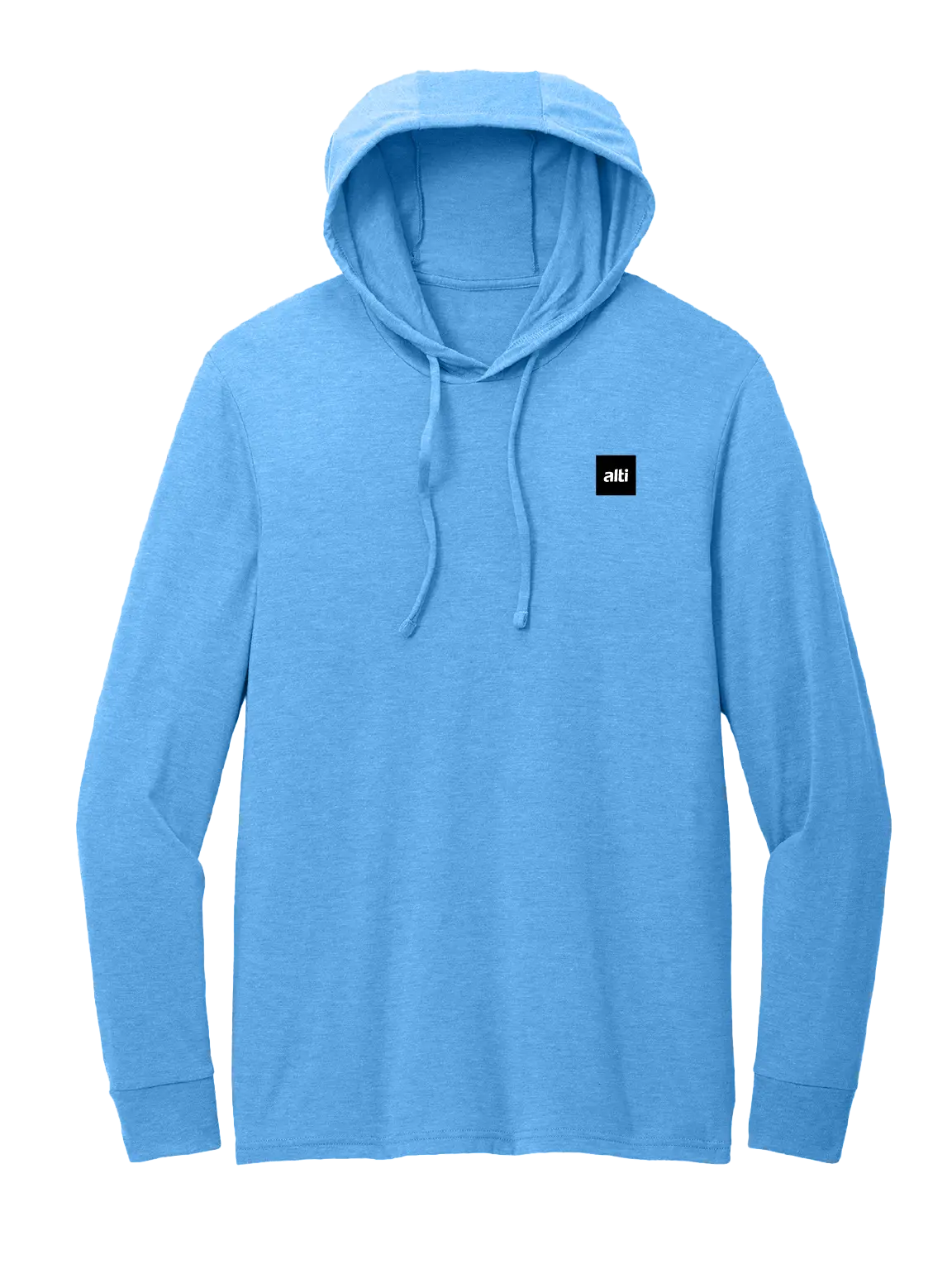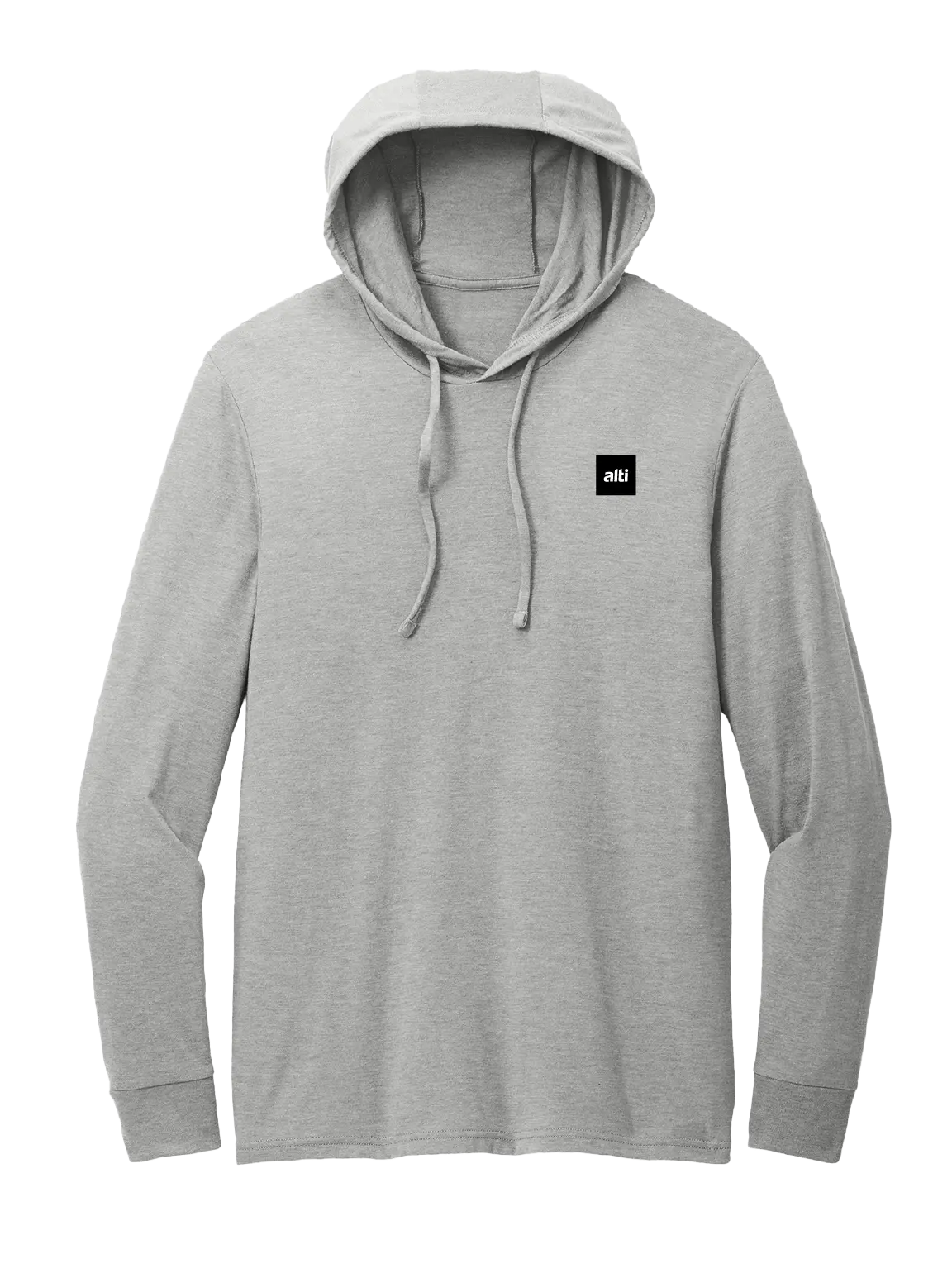 The Alti Logo Hoodie Tee features the iconic Alti logo on the chest. Made from organic cotton and recycled materials, this lightweight and super soft tri-blend hoodie is ideal for moderately cool days in mud season.
